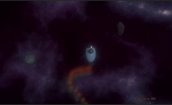 Gameplay feels really smooth as the rocket wanders through the endless space and enviroment is to my liking; dark and gloomy. It's a bit too easy though but nice work!
